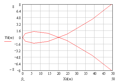 3) Побудуємо на комплексній площині (Х0У) криву Найквіста та зробимо висновок про стійкість системи: