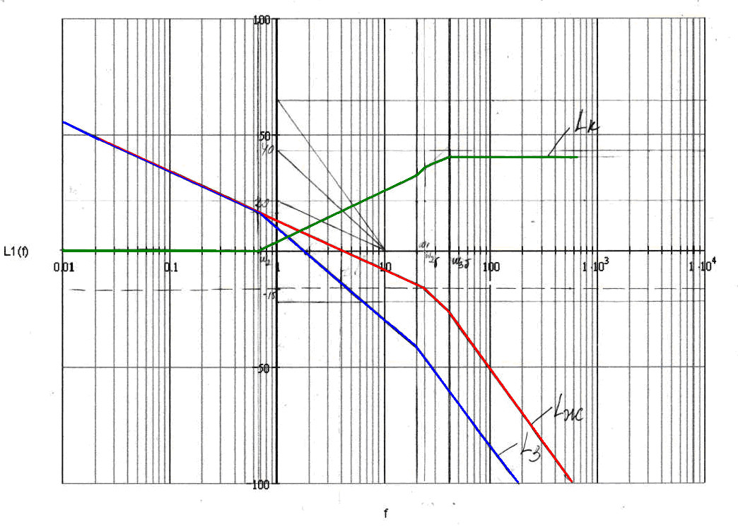 2.6 Використовуючи логарифмічні частотні характеристики, виконання корекції САК в області середніх частот з метою отримання заданих запасів стійкості по фазі та амплітуді
