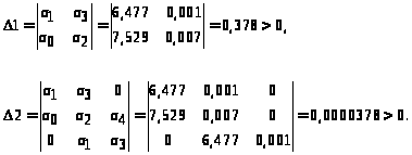 На основі отриманих коефіцієнтів характеристичного рівняння побудуємо головний визначник Гурвіца: