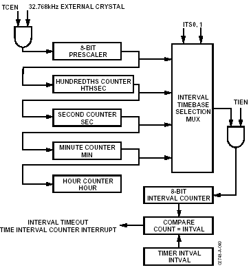 Важной особенностью прибора является наличие счетчика временных интервалов (TIC), позволяющего отсчитывать временные интервалы большие, чем способны стандартные таймеры – длительностью до 255 часов. Упрощенная схема TIC представлена на рисунке 2.6.
