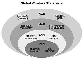 Різних специфікацій стандартів бездротових мереж сімейства 802.1х існує досить багато. Всі вони поділяються на чотири великі категорії: WPAN, WLAN, WMAN, WWAN.