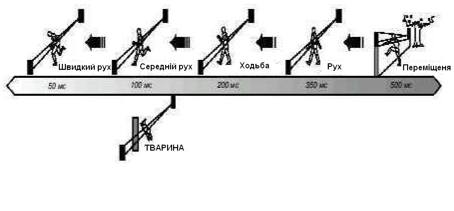 Робота багатьох систем охоронної сигналізації заснована на дуже простому принципі: у приміщенні, що охороняється, у неурочний час не повинно бути ніякого руху. Щоб виявити його, приміщення "заповнюють" випромінюванням — найчастіше радіо| або акустичним. Багато разів відобразившись від стін і предметів, що знаходяться в приміщенні, промені досягають приймача [7]. Будь-яка зміна обстановки викличе модуляцію прийнятого сигналу, що і зафіксує датчик.