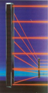 Фірма Radiovisor (Великобританія) випускає багатопроменеві датчики серії Perimbar, що вмонтовуються на грунті або на стіні. Система синхронізації Synclink дозволяє створити багатопроменевий бар'єр без міжпроменевої інтерференції. Висота збираних з модулів датчиків варіюється від півметра до декількох метрів. Усередині об'ємного металевого каркаса, під акриловими фільтрами, непрозорими для видимого світла, розташовуються приймачі і передавачі випромінювання, нагрівачі, термостат, а також блоки живлення, контролю і синхронізації. Жорстка конструкція стійок Perimbar дозволяє використовувати їх як опори для вуличних світильників (рис.5) і тим самим зробити датчики практично непомітними. Датчики працюють на довжині хвилі 0,88 мкм| і забезпечують дальність дії не менше 150 метрів.|