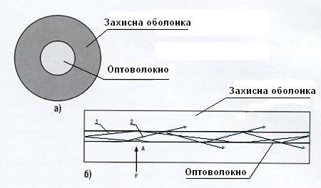 Пропонований винахід відноситься до сигнальних пристроїв на основі волоконної оптики і може бути використано в системах захисту периметра територій і приміщень від несанкціонованого доступу.