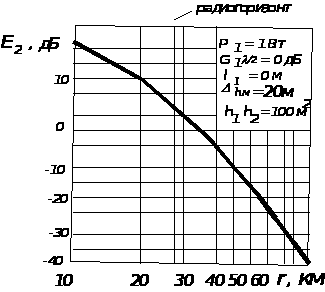 Дальность связи можно определить и без построения графика уровня сигнала вдоль перегона. Для этого из формулы (2.4) нужно определить значение напряженности поля Е>2> при u>2> = u>2 мин>; затем по графику (рис.2.1) или по табл. П.3.1 находится расстояние, которое и будет являться дальностью связи.