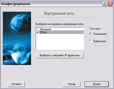 6) Здесь выбираем внешний интерфейс, кнопка "Выбрать с "белыми" IP адресами" работает как и "Выбрать с интранет IP адресами".