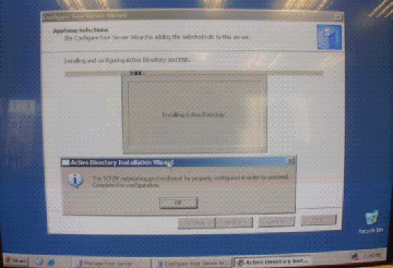 В конце этапа Win 2003 предложит сразу настроить сетевые параметры компьютера. Можно их принять и как по "умолчанию". Если что-то будет введено некорректно (особенно пароль админа), то Windows просто откажется их принимать.