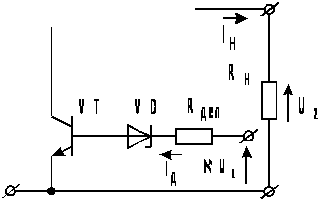 СТ бывают параллельного и последовательного типов. Параллельный СТ (рис.1, б) содержит регулирующий 1 и опорный 3 элементы, сравнивающий и усилительный элемент 2. В нем при пренебрежении током через внутреннее сопротивление R>i> элемента 1 выполняется условие