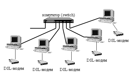 Рис.4.2.Під’єднання до Інтернету на основі індивідуальних DSL-модемів.