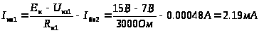 Токи покоя в схеме (I>бп1>; I>кп1>; I>эп1>; I>бп2>; I>кп2>; I>эп2>) при условии, когда ключи К>1> и К>2> замкнуты, а К>3> ─ разомкнут.