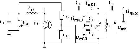 При рассмотрении схемы не учитывались паразитные параметры – междуэлектродные емкости и инерционность усилительного элемента. Поэтому коэффициент обратной связи оказался независимым от частоты, что справедливо при относительно невысоких частотах (в половину меньших граничной частоты транзистора). С повышением частоты схема замещения автогенератора усложняется, и коэффициент обратной связи должен рассматриваться с учетом перечисленных факторов.