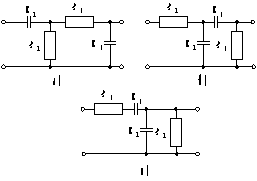 Рис. 5 Схемы и ФЧХ трехзвенных RC-цепей