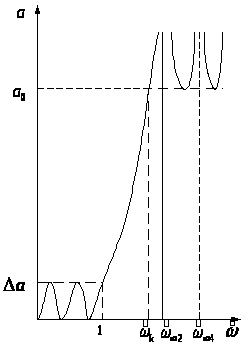Пусть задана неравномерность затухания Δа, которая может быть на любой частоте полосы пропускания. Потребуем, чтобы при заданном n (числе элементов) затухания фильтра в полосе задержания, а>0> было бы максимально возможным.