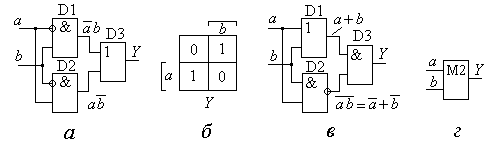 На рис.1.17 приведено УГО этого элемента, карта Карно его выходной функции X и функциональная эквивалентная схема.