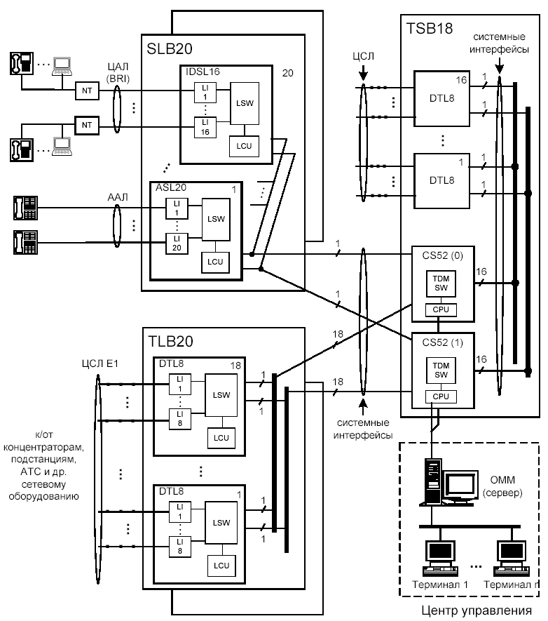 - адаптация терминалов и абонентских линий;
