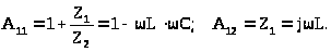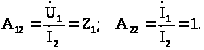 В этих уравнениях А>11>, А>12>, А>21>, А>22> называются коэффициентами формы А. Они, в общем случае, являются комплексными числами, модули которых зависят от частоты.