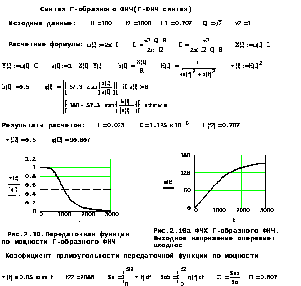 Отметим, что изложенный порядок проектирования носит общий характер и может применяться в среде Mathcad при любой комбинации исходных данных: H>1>, f>2>, R, Q.