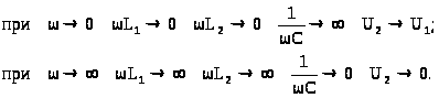 На малых частотах индуктивные сопротивления Z>1>, Z>3> малы, а емкостное сопротивление Z>2> велико, поэтому ток проходит в нагрузку с малым ослаблением.