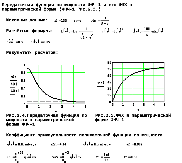 Расчет передаточной функции по мощности проведем по формуле (1.10), ФЧХ – по формуле (1.8) с учетом (2.26).