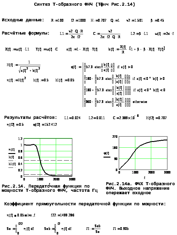 Таким образом, при известных значениях RLC - элементов можно рассчитать и построить графики АЧХ и ФЧХ Т-образного ФНЧ, используя формулы (1.8), (1.10) и (2.26).