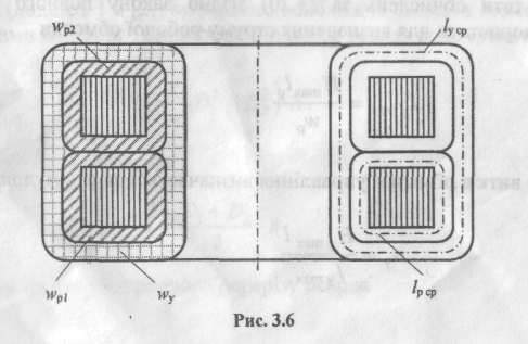 Середнє значення довжини одного витка робочої обмотки l>р ср> та обмотки управління l>у ср> (див. рис. 3.6)> >визначаємо за формулами: