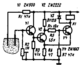 Детали. Транзистор V2 типа МП40-МП42, V4 типов КТ605, КТ608Б, КТ503; для более высоких температур используют кремниевый транзистор МП116, КТ361 с любым буквенным индексом; резисторы типа МЛТ-0,25; R6 - типа МЛТ-0,5; реле типа РЭС-22.