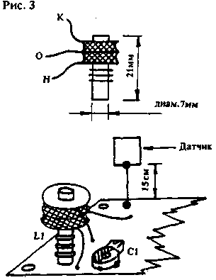 Детали. Трансформатор Т1 выполнен на магнитопроводе Ш12 X 15: обмотка I содержит 4000 витков провода ПЭВ-1 0,1, обмотка II - 300 витков провода ПЭВ-1 0,29.