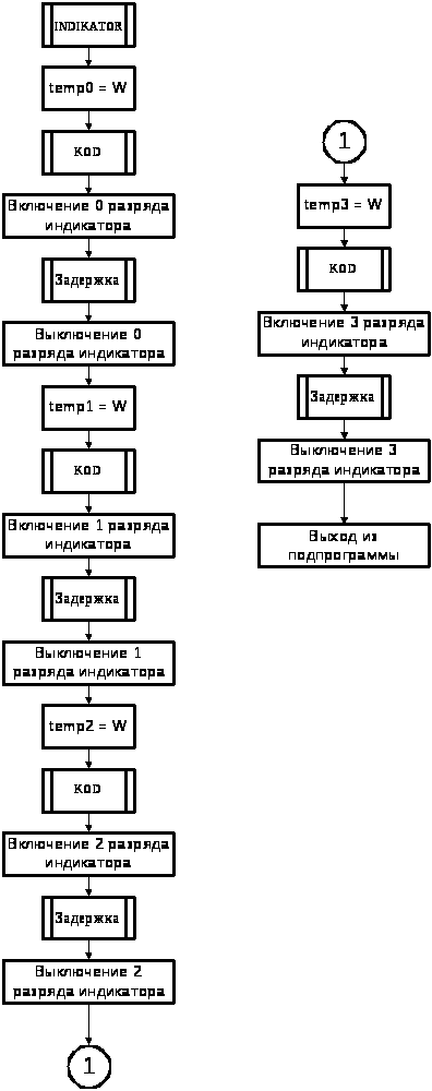 5 Индикатор - семисегментный индикаторы (ССИ) широко используются для отображения цифровой и символьной информации. Семь отображающих элементов позволяют высвечивать десятичные и шестнадцатеричные цифры, а также некоторые специальные знаки. Структура ССИ показана на рис. 2.2 . Для засветки одного сегмента большинства типов ССИ необходимо обеспечить протекание через сегмент тока 10-25 мА. В нашем случае потребуется четыре ССИ.