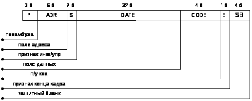 Объект, приняв подтверждение, начинает передачу кадра с информацией с датчиков содержащего адрес объекта и посылки из 3х удлиненных бит, сигнализирующих начало передачи.