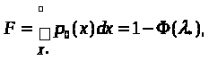 При этом вероятность ложной тревоги, как площадь под кривой p0(x) правее порога X*, определяется выражением: