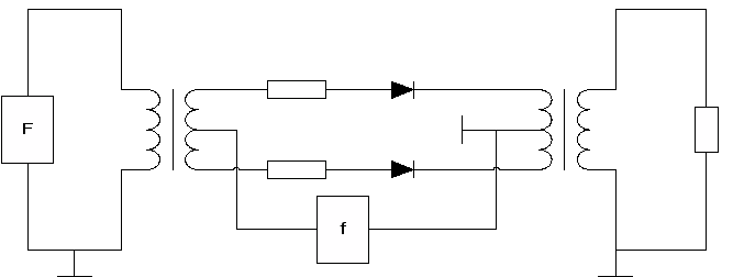 На модулятор поданы частоты F = 8 кГц и f = 64 кГц внутренние сопротивления генераторов сигналов, и сопротивление нагрузки модуляторов принимается равным 600 Ом.