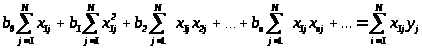 Y = b>0> + b>1>x>1> + b>2>x>2> +...+ b>n>x>n> + b>12>x>1>x>2> + b>13> x>1>x>3> +…b>n-1,n> x>n-1>x>n>+ …+ b>n+k>x>1>2 + b>n+k+1>x>2>2 + … + b>m>x>n>2 + … = b>0> + b>1>x>1> + b>2>x>2> +... + b>n>x>n> +... + b>m>x>m> +… (1),