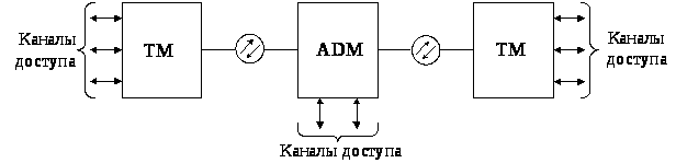 Чтобы добавлять в сеть или изымать из нее цифровые потоки, или транспортные единицы и группы со скоростями 2, 34, 140 или 155 Мбит/с используются мультиплексоры ввода/вывода (ADM).мультиплексоры могут выполнять функции перестановки временных позиций каналов и трактов, а также поддерживать функции конфигурирования и контроля сети.