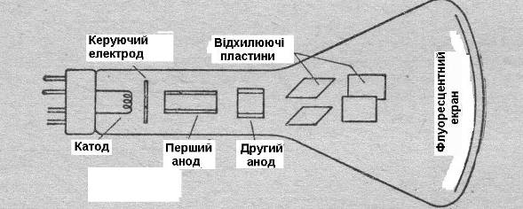Електронно-променева трубка – вакуумний балон, у якому одержаний на основі термоелектронної емісії пучок електронів за допомогою електричних або магнітних полів може направлятись у визначену току екрану, який покритий флуоресцентним шаром. В такій конструкції колір зображення на екрані тільки один. Він визначається типом люмінофора.