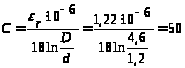 Рассчитаем емкость симметричной цепи, в проводниках которой оказалось по 2 корделя. Диаметр изолированной жилы у нее будет: