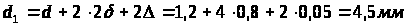 Определим расстояние между центрами пары проводников, находящихся внутри четверки в кабеле МКСГ 4х4х1,2 и диаметр звездной группы. При этом необходимо учесть, что под парой проводников подразумеваются противоположно расположенные проводники внутри четверки. Диаметр изолированной жилы: