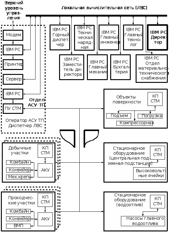 Рис.2. Структура современной системы управления производством на примере системы управления угольной шахты