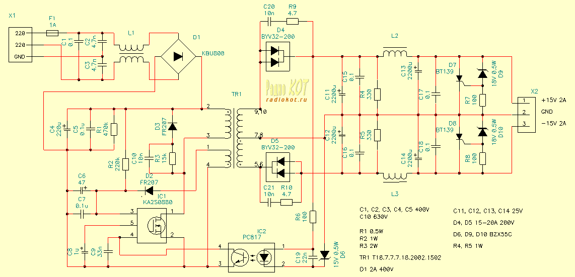 2.3 Імпульсний БП на мікросхемі KA2S0880