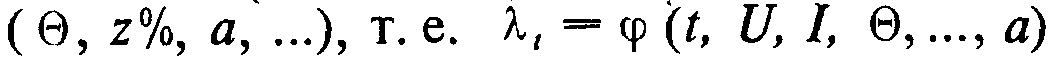 Исходя из анализа физических и физико-химических процессов, являющихся причинами возникновения отказов определим зависимость λ>1>, от режимов работы.