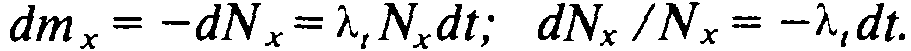Так как m>x> = N>0>- N>x> и, следовательно dm>x> = -dN>x>, то после деления обеих частей на N>x> имеем
