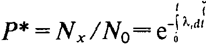 Если в рассматриваемый момент времени t = t>x> имеется N>x> работающих изделий, a m>x> = N>0>-N>x> вышли из строя, то опытная статистическая вероятность безотказной работы P* = N>X>/N>0>, а опытная статистическая вероятность отказов Q* = (N>0> - N>x>) /N>0> = m>x>/N>0>, где Р* и Q* характеризуют частоту отказов в данном опыте и являются оценками соответствующих "математических" вероятностей, которые определяются как пределы: