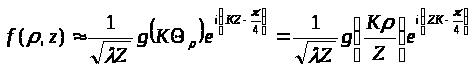 При этом решение дифракционной задачи упрощается в большей мере, чем даже в частных случаях дифракции Френеля или приближения геометрической оптики. Действительно, поле в дальней зоне, используя полярную систему координат