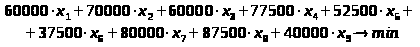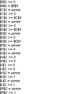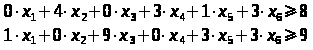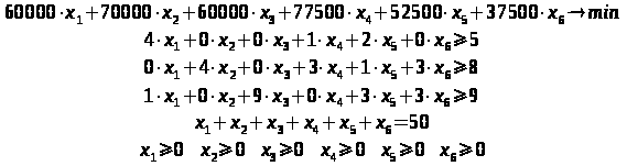 2) Сформулируем задачу математически сначала для минимизации отходов. Пусть x1 – число листов, израсходованных по первому варианту раскроя, x2 – соответственно по второму варианту; x3 – соответственно по третьему варианту; x4 –по четвертому варианту, и так далее для x5, x6. Минимум линейной функции, выражающей минимизацию отходов пока без учета лишних изготовленных заготовок запишется как