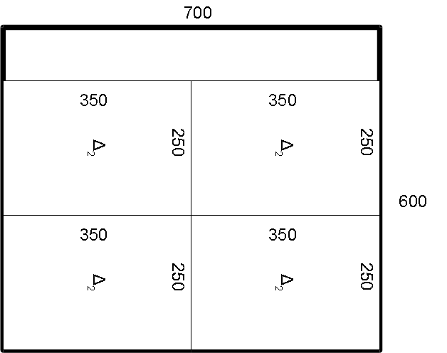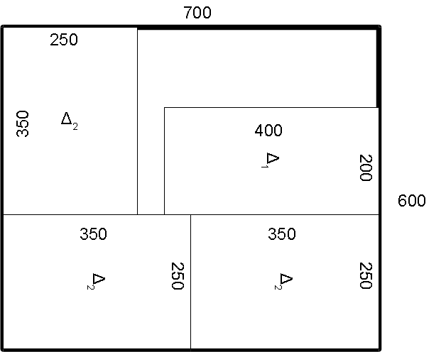 1) Общая площадь листа исходного материала 700×600=420000. Площади прямоугольных заготовок равны соответственно: 1-я заготовка – 2000=80000; 2-я заготовка – 250=87500; 3-я заготовка – 0=40000. Возможны следующие варианты раскроя с минимальным количеством отходов с листа (табл. 1 ).