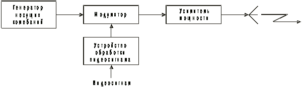 - модуляция колебаний несущей частоты видеосигналом, т.е. образование радиосигнала;