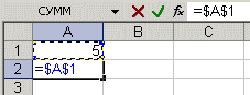 Смешанная ссылка содержит комбинацию относительной и абсолютной ссылок - $A1, A$1.