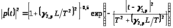 де Т – половина ширини iмпульсу на рівні інтенсивності 1/e та >с> – частота несучої, тоді можливо показати після одержання Фур'є-спектра від f(t), що після поширення через довжину L волокна кожної p-ї моди, розподіл інтенсивності p-ї моди буде даватися як: