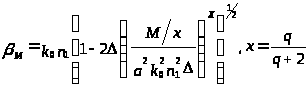 де n>1> – осьовий індекс заломлення, а – радіус серцевини, q визначає форму профіля серцевини і представляє відносну різницю індексів серцевини і оболонки: