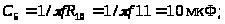 >Розрахуємо значення ємності перехідного конденсатора , величина ємностей конденсаторів розраховується із умови, що при збільшені ємнісного опору на 50% на нижній граничній частоті напруга на виході повинна становити приблизно 90% вхідної. Виходячи з цього значення ємностей конденсаторів розраховуються за формулою:>