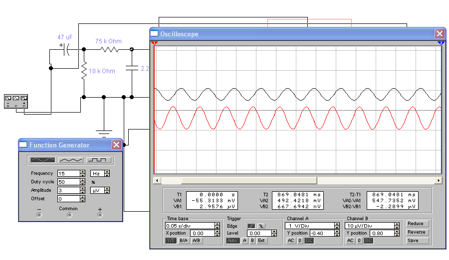 Для проверки правильности функционирования разработанного микрофонного усилителя была промоделирована его работа с помощью программы “ Electronics Workbench”.